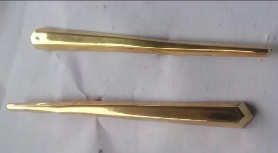 -Em latão cromado (metal amarelo de difícil oxidação)